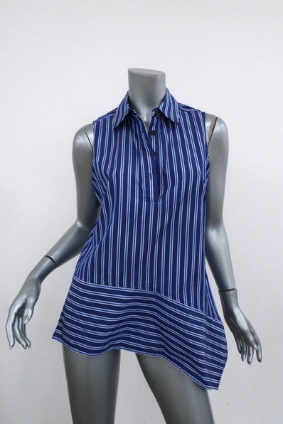 Derek Lam 10 Crosby Asymmetrical Sleeveless Shirt Blue Striped Cotton Size 4 - Gently worn. Great condition. No flaws. Retails for $275!