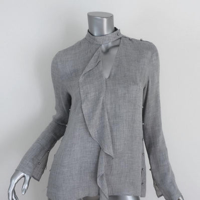 Derek Lam 10 Crosby Ruffle Blouse Light Gray Wool-Blend Size 2 Cutout-...
