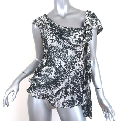 Derek Lam Asymmetric Draped Top Gray/Black Butterfly Print Silk Size US 6