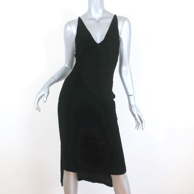 Dion Lee Fine Line Asymmetric Midi Dress Black Velvet Size US 2