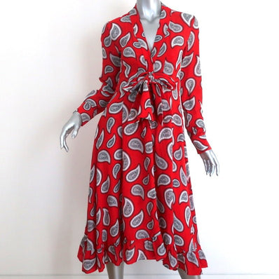 Dodo Bar Or Tie-Front Midi Dress Lennon Red Paisley Print Silk Size 42