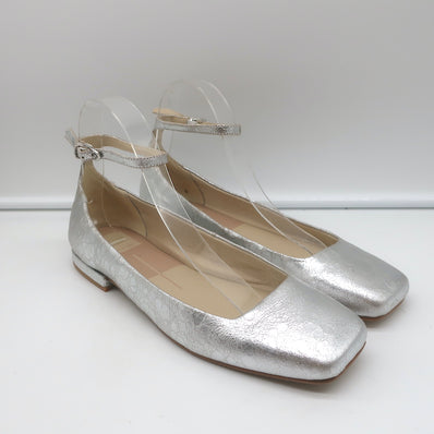 Dolce Vita Ashya Ankle Strap Ballet Flats Silver Metallic Leather Size...
