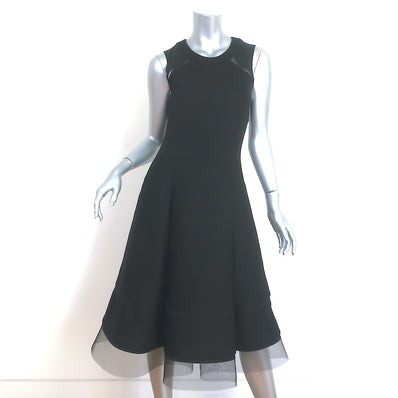 Donna Karan Sleeveless Midi Dress Black Tulle-Trimmed Sculpted Jersey ...