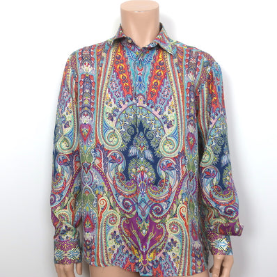 Etro Paisley Print Linen Button Down Shirt Size Large