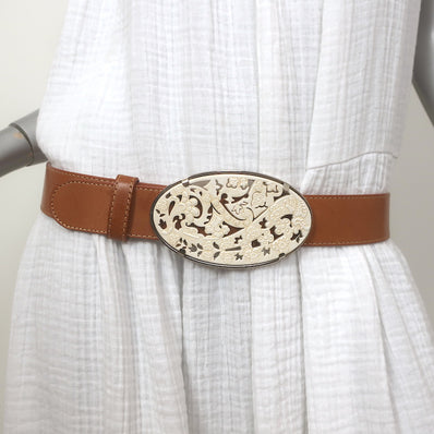 Etro Carved Buckle Belt Tan Leather Size 90