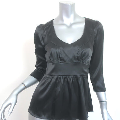 Etro Blouse Black Stretch Silk Satin Size 40