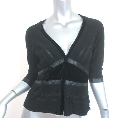 Etro Cardigan Black Satin-Trimmed Metallic Knit Size 40 V-Neck Sweater...