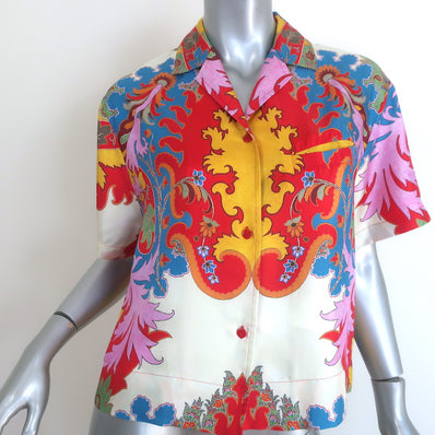 Etro Blooming Paisley Print Blouse Multicolor Silk Size 38 Short Sleev...