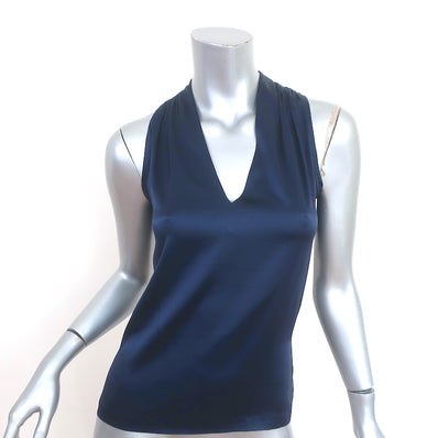 Etro Tank Top Navy Stretch Silk Satin Size 40 Sleeveless Blouse
