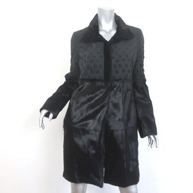 Etro Coat Black Beaded Taffeta & Goat Fur Size 44 Snap-Front Jacket