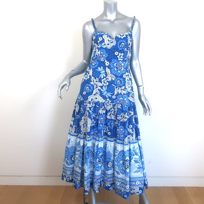 FARM Rio Full of Flowers Midi Dress Blue Floral Print Cotton Size Medium