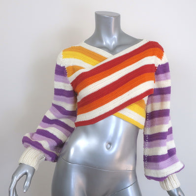 FARM Rio Sunset Stripe Crochet Crisscross Sweater Multicolor Size Extr...