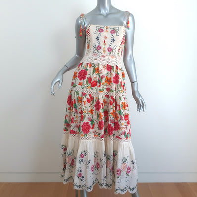 FARM Rio Embroidered Midi Dress Toucans Garden Floral Print Size Extra...