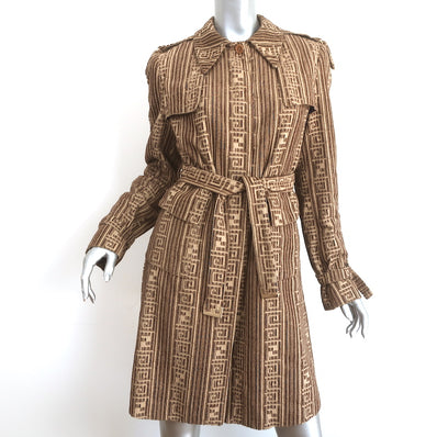 Vintage Fendi FF Trench Coat Beige Cotton-Blend Size 42 Belted Jacket