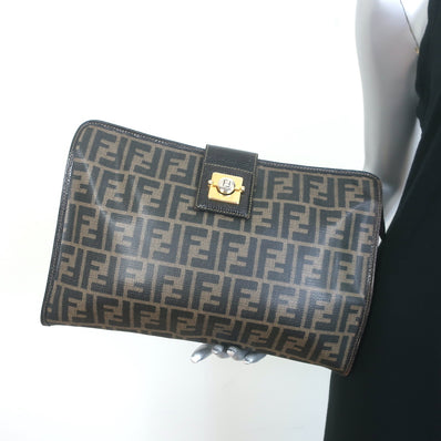 Vintage Fendi Zucca Coated Canvas Large Clutch Brown