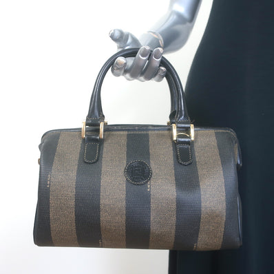 Vintage Fendi Pequin Small Boston Bag Brown Striped Canvas