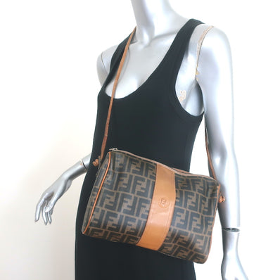 Vintage Fendi FF Zucca Coated Canvas Medium Shoulder Bag Brown