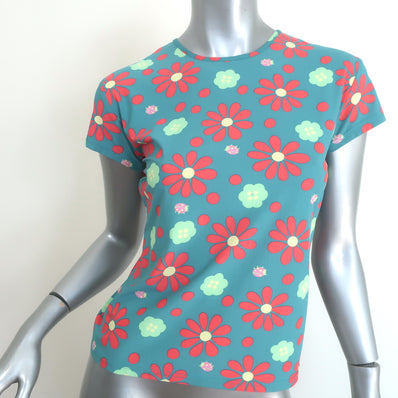 Vintage Fendi Jeans Short Sleeve Top Aqua Daisy Print Size Extra Small