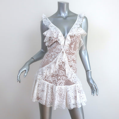 For Love & Lemons Mini Dress Tati White Ruffled Lace Size Medium
