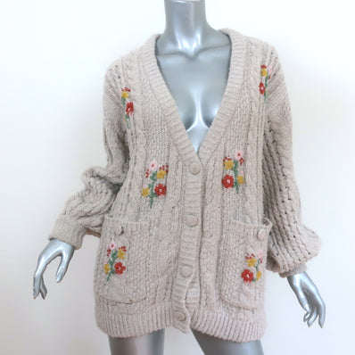 For Love & Lemons Embroidered Cardigan Amaryllis Wheat Cable Knit Size...