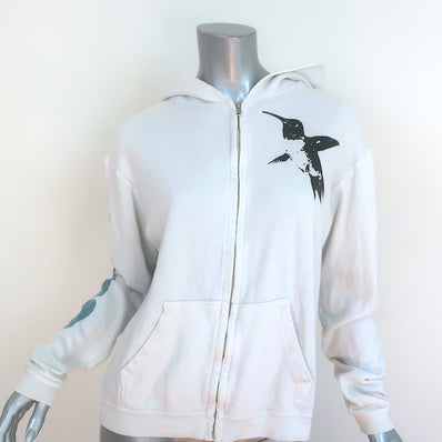 FREECITY Lets Go Zip-Up Hoodie Sweatshirt Off-White Cotton Size 2