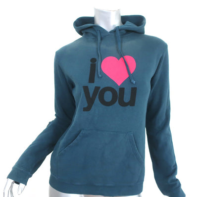 FREECITY I Love You Hoodie Teal Size 2 Pullover Sweatshirt