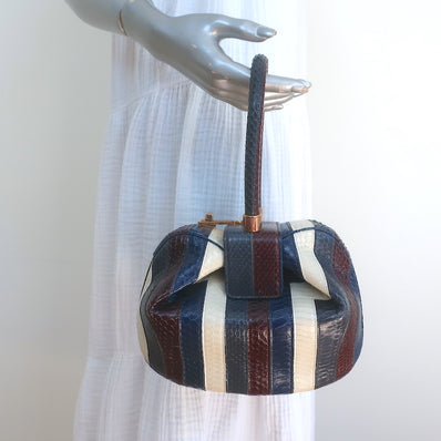 Gabriela Hearst Nina Bag Blue/Burgundy Striped Snakeskin NEW