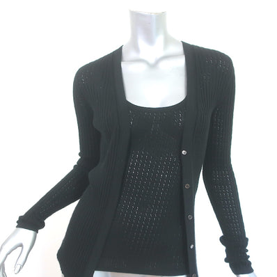Gabriela Hearst Tank Top & Cardigan Sweater Set Black Pointelle Knit S...