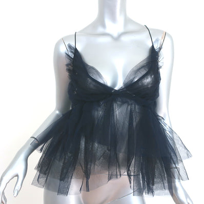 Forte Forte Tulle Peplum Top Navy Size 0 Crisscross-Back Tank NEW