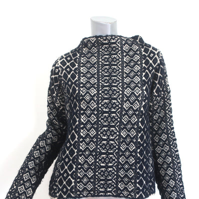 Giada Forte Pullover Sweater Navy Wool-Blend Geometric Textured Knit S...