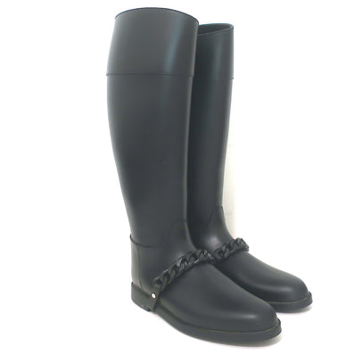 Givenchy Eva Chain Knee-High Rain Boots Black Rubber Size 40