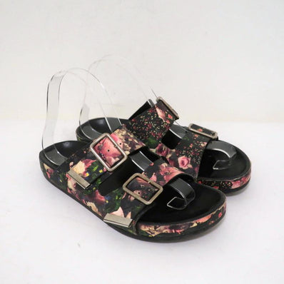 Givenchy Double-Buckle Slide Sandals Black Floral Print Leather Size 36