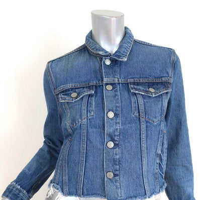GRLFRND Cara Frayed Denim Jacket London Calling Size Small Cropped Jea...