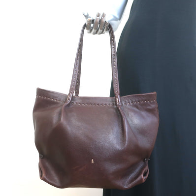 Henry Beguelin Zip-Top Tote Dark Brown Leather Large Shoulder Bag