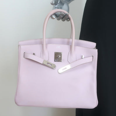 Hermes Birkin 30 Bag Rose Dragee Swift Leather Palladium Hardware