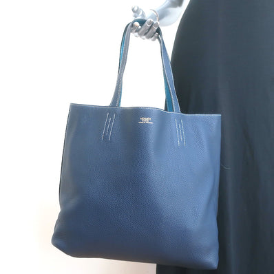 Hermes Double Sens 45 Reversible Tote Bleu Electrique Graphite Clemenc...