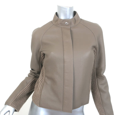 Hermes Leather & Cashmere Ribbed Knit Jacket Gris Etoupe Size 38