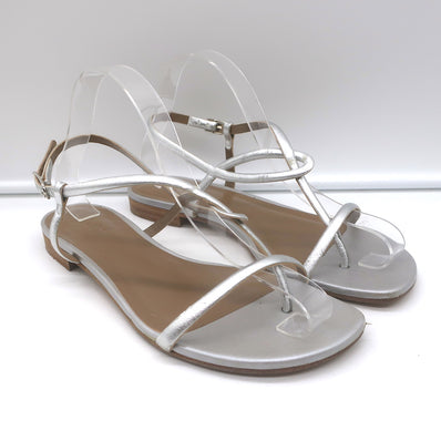 Hermes Flat Slingback Thong Sandals Silver Metallic Leather Size 40