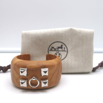 Hermes Medor Wood Wide Cuff Bracelet Size Small