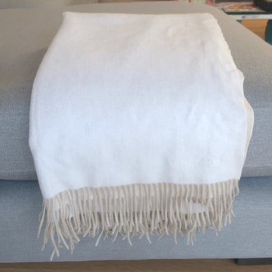Hermes Fringed Throw Blanket Ecru/Beige NEW