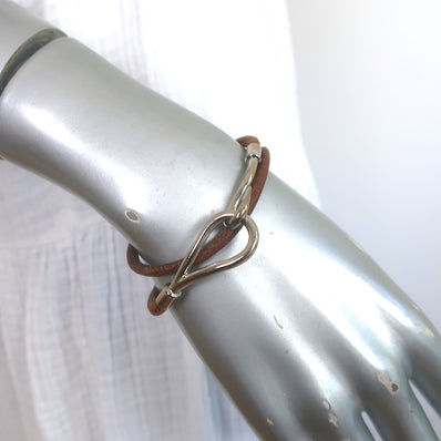 Hermes Jumbo Hook Double Tour Bracelet Palladium Hardware & Brown Leather