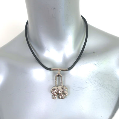 Hermes Elephant Cadena Lock Necklace Palladium Hardware & Black Leather