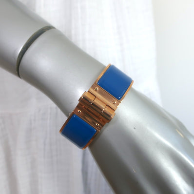 Hermes Charniere Large Hinged Bracelet Bleu Enamel & Rose Gold