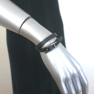 Hermes Behapi Double Tour Reversible Wrap Bracelet Black/Gris Etain Si...