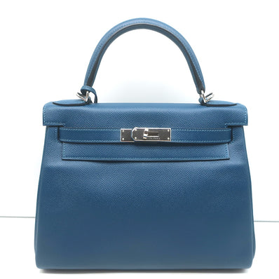 Hermes Kelly 28 Retourne Bleu Thalassa Epsom Leather Palladium Hardwar...