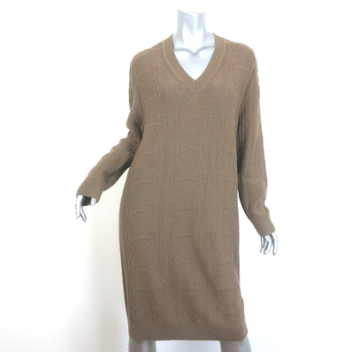 Hermes Horsebit Knit V-Neck Sweater Dress Taupe Wool-Cashmere Size 38