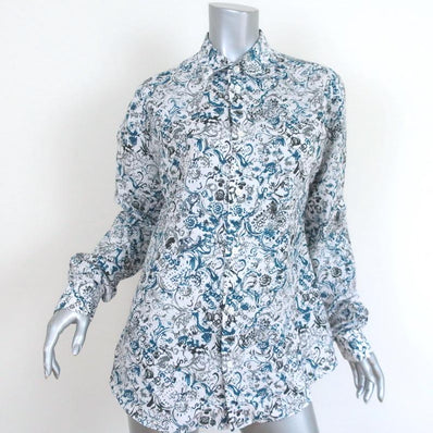 Hermes Button Down Shirt White/Blue Printed Linen-Cotton Size 40 Long ...