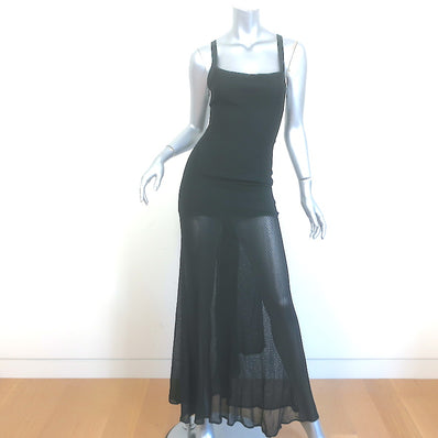 Vintage 1990s Herve Leger Open-Back Mesh Maxi Dress Black Size Small