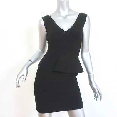 Herve Leger Bandage Peplum Dress Rebeca Black Size Small Sleeveless Mini