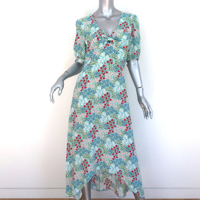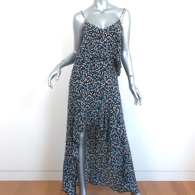 Intermix High-Low Midi Dress Nessa Blue Floral Print Silk Size 8 Short...